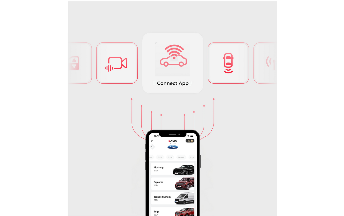 Ouvrez l’application BASIC Europe et laissez-la détecter automatiquement votre appareil via Bluetooth. Aucune compétence particulière n’est nécessaire : l’application s’occupe de tout. Choisissez la marque et le modèle de votre véhicule, puis parcourez le catalogue des fonctions disponibles prêtes à être activées.